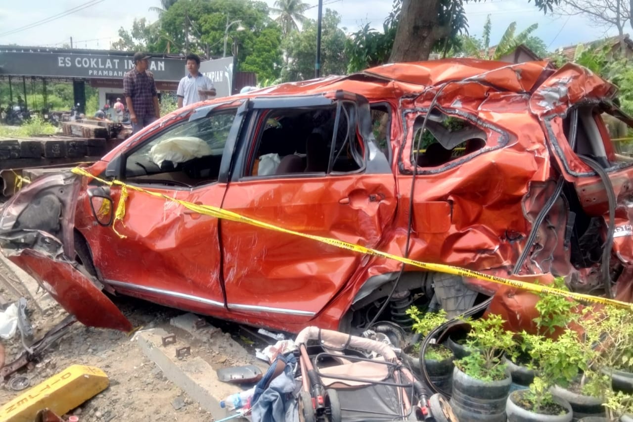 Minibus Calya-2 Motor hancur usai dihantam KA Bangunkarta di Sleman.